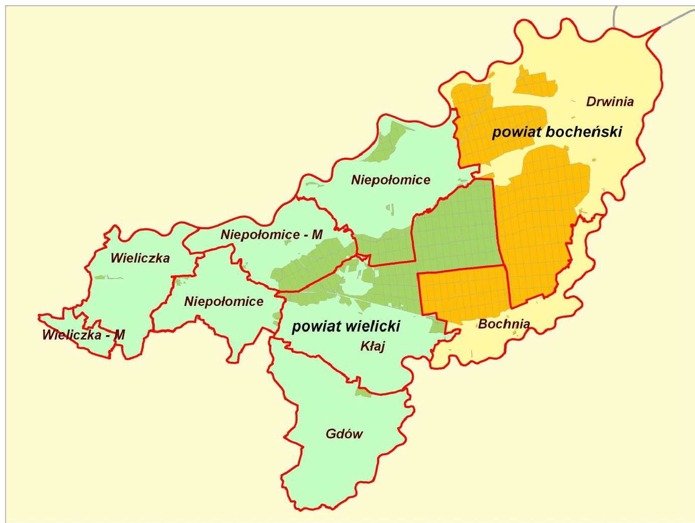Lasy własności Skarbu Państwa zarządzane przez Nadleśnictwo Niepołomice położone są w województwie Małopolskim w powiecie wielickim (Gminy Gdów, Kłaj, Niepołomice, Wieliczka) oraz w powiecie bocheńskim (Gmina Bochnia Drwinia) tworząc kompleks leśny o nazwie "Puszcza Niepołomicka". Wg regionalizacji przyrodniczo - leśnej lasy zarządzane przez Nadleśnictwo Niepołomice znajdują się w VI Krainie Małopolskiej. Część północna Nadleśnictwa o powierzchni około 2 000 ha leży w dzielnicy 10 Niziny Sandomierskiej i stanowi kompleks liściasty o siedliskach lasowych, natomiast zasadnicza część lasów ok. 8 000 ha tworzy kompleks borowy z przewagą siedlisk borowych i przynależy do 11 dzielnicy Wysoczyzn Sandomierskich.